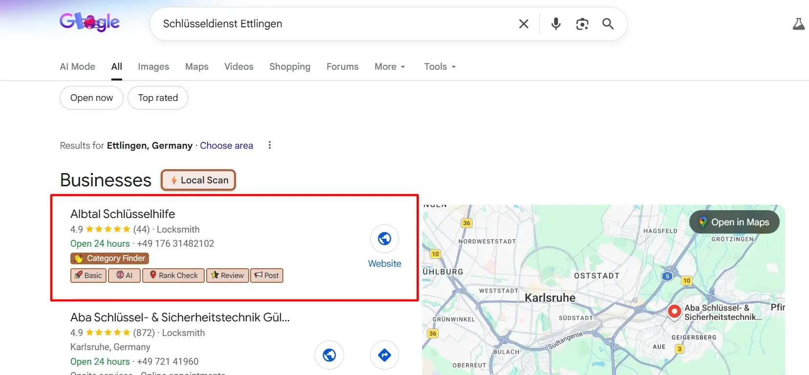 When the owner of Albtal Schlüsselhilfe launched their locksmith service in Ettlingen, the business had almost no online visibility.