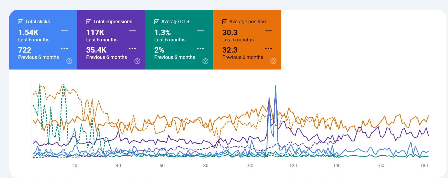 After implementing a focused SEO strategy, the website began seeing steady growth in impressions, clicks, and keyword rankings.