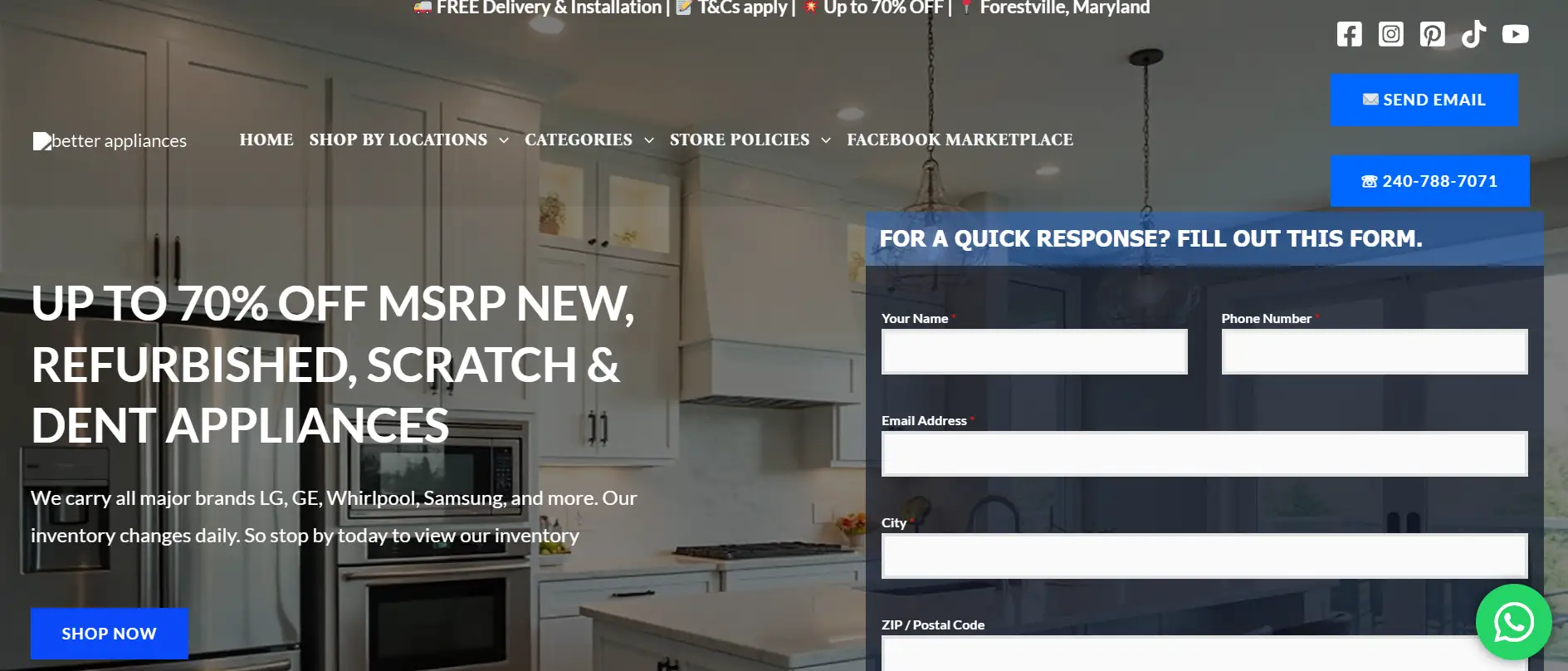Better Appliance MD has been serving customers across Maryland, Virginia, and surrounding areas with affordable home appliances including new, scratch & dent, and refurbished units.