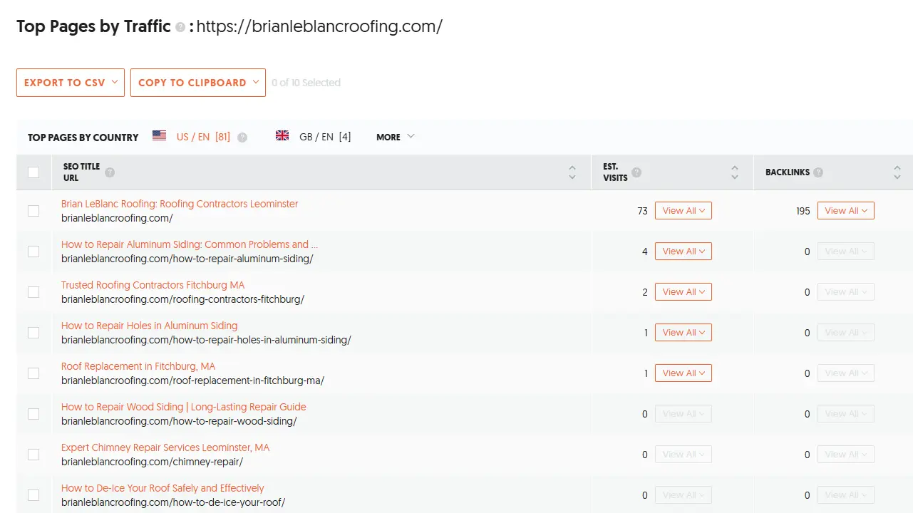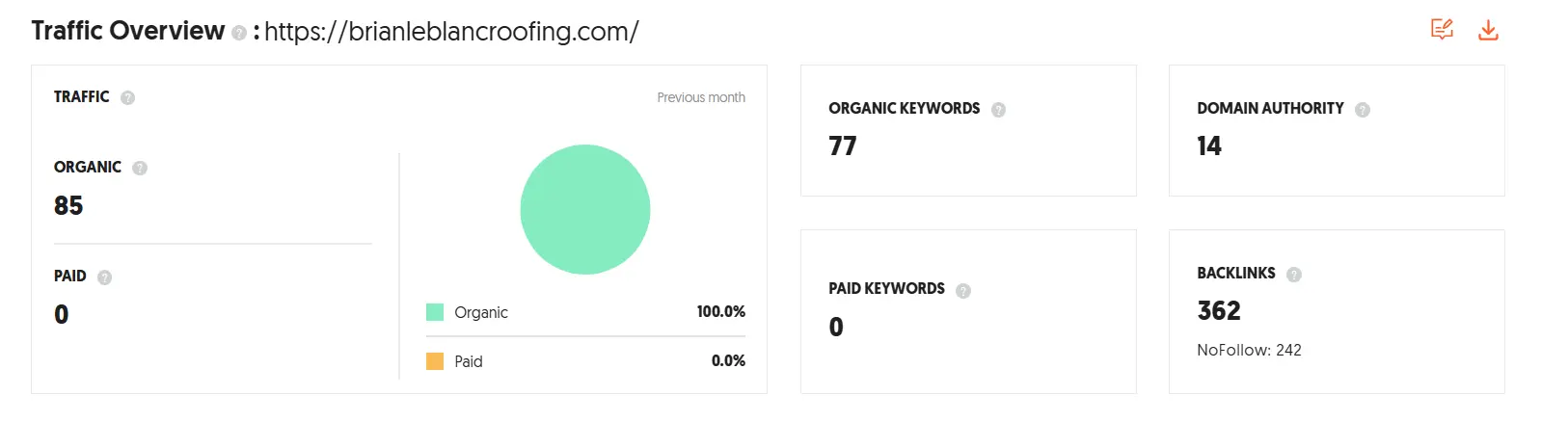 Brian M. LeBlanc Roofing already had a strong reputation for quality roofing services across Massachusetts and Southern New Hampshire. However, their website was generating only a small amount of organic traffic, with around 85 monthly visitors, meaning many potential homeowners searching for roofing services online were not yet finding the business.